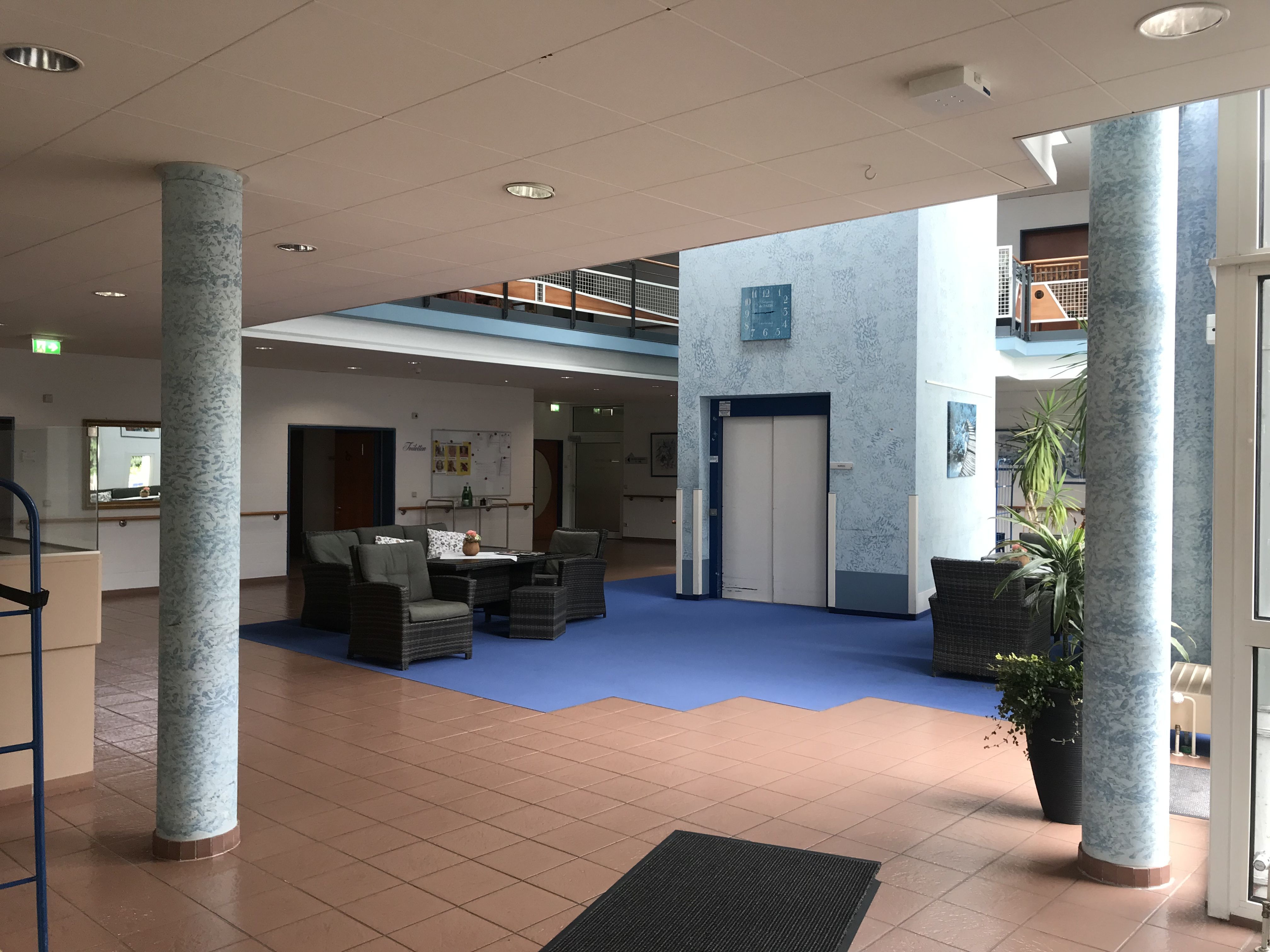Auf die speziellen Bedürfnisse dementiell erkrankter Menschen, die häufig einen gesteigerten Bewegungsdrang aufweisen, haben wir mit der Einrichtung eines beschützten Wohnbereichs reagiert. In einem in sich geschlossenen Bereich wohnen 20 Bewohnerinnen und Bewohner auf Dauer, kommen für einige Zeit in die Kurzzeitpflege oder zur Betreuung in die Tagespflege.